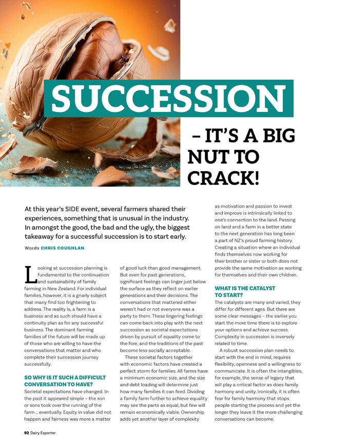 In the latest edition of the NZ Dairy Exporter, Partner Chris Coughlan writes about this year's SIDE event and the biggest takeaway for successful succession planning is to start early.