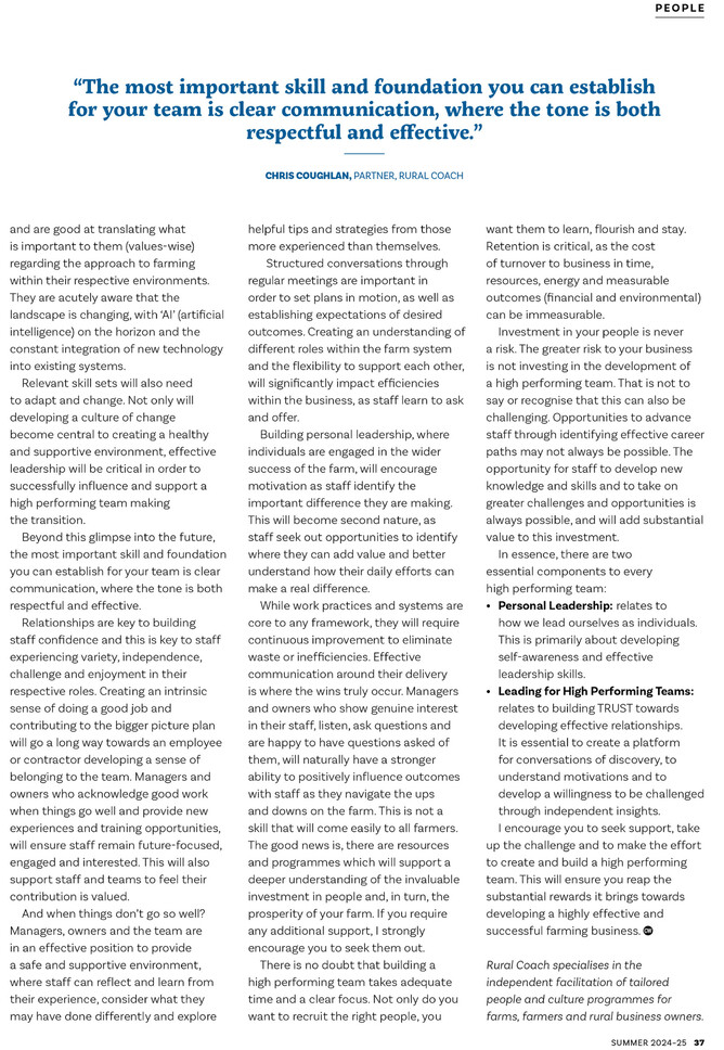 Partner Chris Coughlan talks High Performing Teams in the Summer Edition of Country-Wide, New Zealand’s only dedicated pastoral and arable farming magazine.